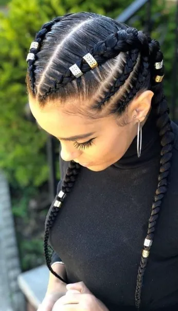 2 French Braids with Tribal Accents and Hair Jewelry